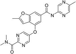 N,N-dimethyl-5-(2-methyl-6-((5-methylpyrazin-2-yl)-carbamoyl)benzofuran-4-yloxy)pyrimidine-2-carboxamide